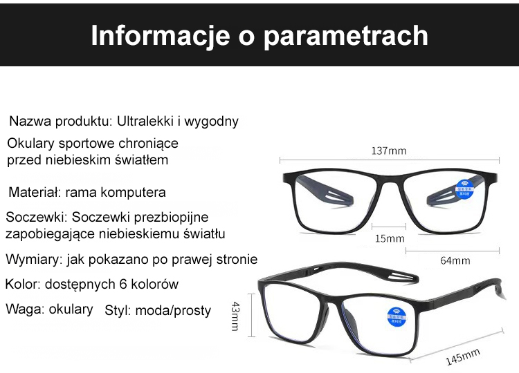 Ultralekkie i wygodne okulary do czytania blokujące niebieskie światło